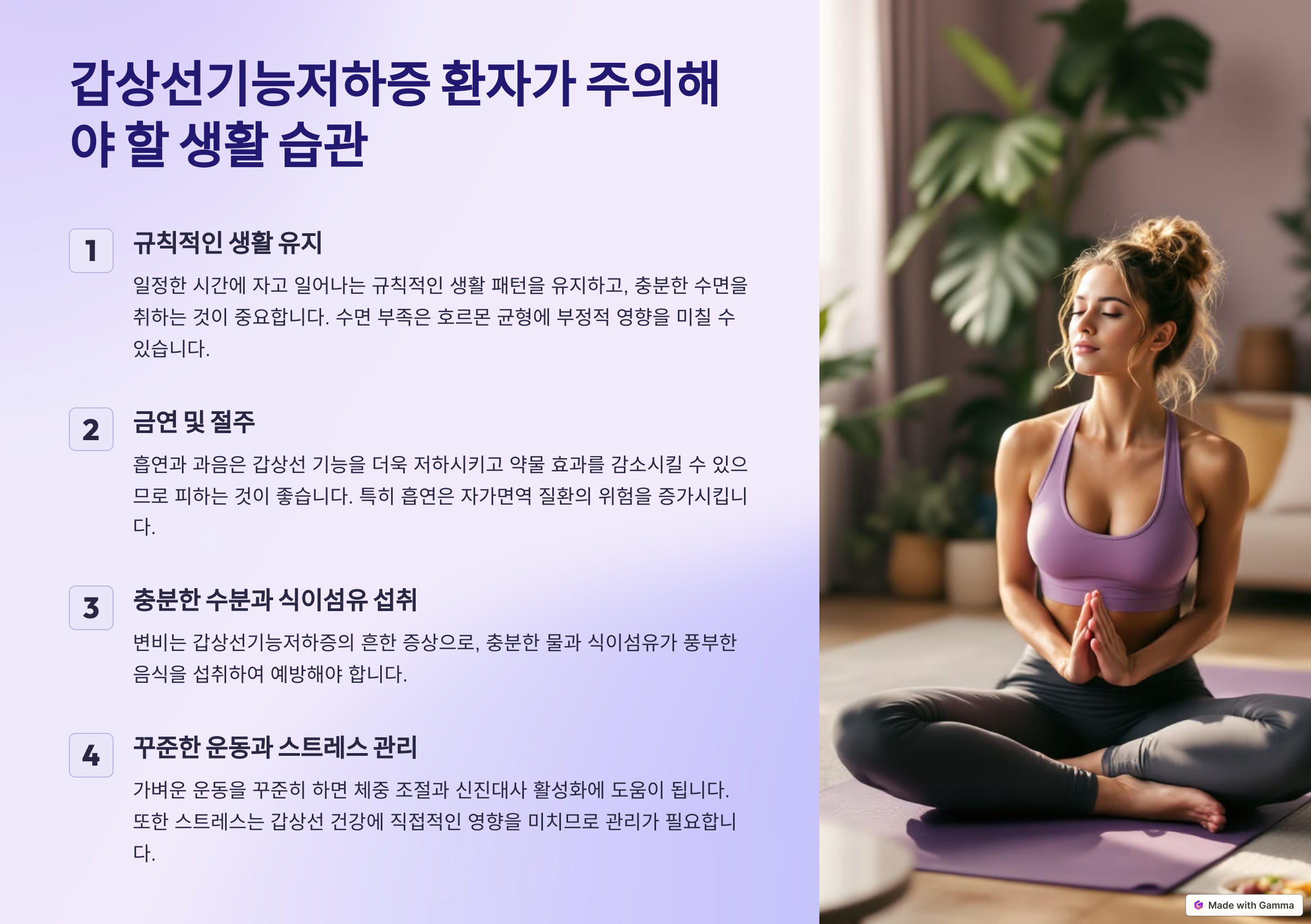 ✅ 스트레스는 갑상선 건강에 영향을 미치므로 관리가 필요합니다.