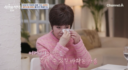 가수 김연자가 채널A 예능 프로그램 ‘절친 토큐멘터리 4인용 식탁’에 출연해 어머니의 급성 파킨슨병 투병 사실을 공개하며 눈물을 쏟았습니다.