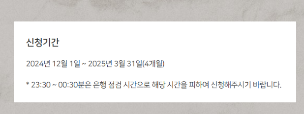 - 신청 기간: 2024년 12월 1일 ~ 2025년 3월 31일